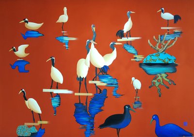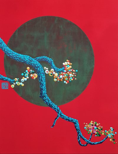 김근정 작가는 십장생이라는 전통소재와 오방색과 오간색이라는 우리의 전통색상을