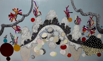 캔버스 자체에만 많은 작업시간과 공이 소요되지만 이런 과정으로 인해 염색기법과 회화기법의 자연스런 조우가 이루어지고 저만의 전통적이면서도 현대적인 독특한 결과물이 나오기 때문입니다