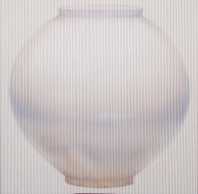나의 작업은 화면을 만들고 축조하는 공작성이 강하게 작용되는 편이며 천을 길게 잘라 띠를 만든 후에 그 조각을 접어 캔버스에 일정한 간격에 맞춰 직각으로 세워 붙여 화면을 만들고 그 위에 그림을 그려 넣는다. 세로로 세워진 띠 형상으로 인해 화면에 그림자가 생기며 화면이 미세하게 움직이는 듯한 착시 효과와 역동성을 불러 일으킨다. 작품을 보며 달항아리만 읽어 낼 것이 아니라 띠에 그림자로 인한 그림의 변화와 역동성도 함께 느껴보길 바란다.