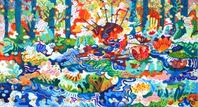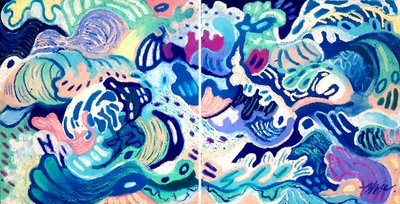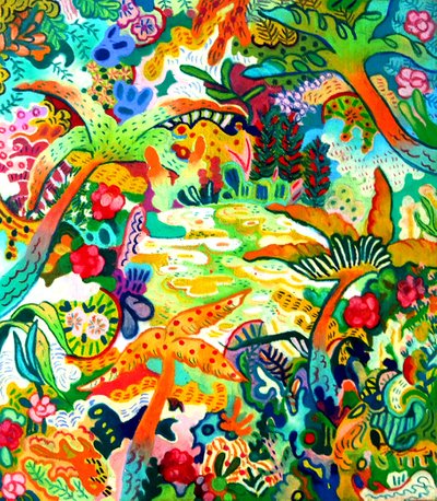 저는 이 오일파스텔로 마치 모든 사물이 환상적인 모습을 가져 딱딱하고 정해진 형태가 아니라 부드럽게 일그러진 모습을 패턴화하여 작업하는 것을 좋아합니다. 때론 그 장소안에 인물이 들어가준다면 재미난 이야기도 생기니 단순히 하나의 그림이 아니라 책이나 영화의 한장면이 되는것 처럼 보여 요즘은 인물을 넣는것도 좋아합니다.