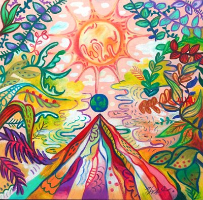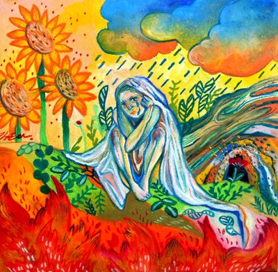 이 그림을 그린이유는 외할머니를 위해서였습니다. 저는 어린시절부터 엄한 외할머니를 매우 무서워했는데, 큰 병에 걸리셔서 병원에서 뵈었을때는 제 기억속에 그 강하고 늠름한 모습이 아니셨습니다. 매우 마르시고 가족들을 기억하시지 못하는 모습에 처음으로 내 가족, 그리고 나의 죽음에 대해 진지하게 생각하게 되었습니다. 외할머니께서는 대략 2달의 시간을 판정받으셨고 저는 더욱 사람이 죽은 후에 가는 곳에대해 생각하게 되었습니다. 그런데 제가 어디서 이런 말을 들은적이 있었습니다.