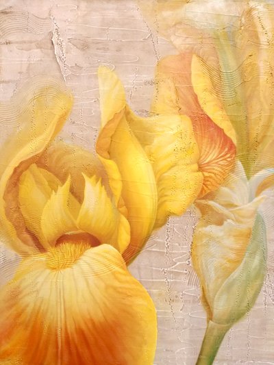 그 위에 담고 싶은꽃이 올려지죠. modeling paste에 아크릴과 유화물감이 자연스럽게 스며들어