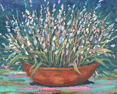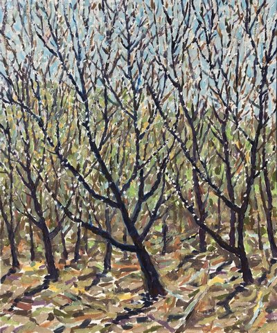 시간은 흐르고 영속적입니다. 그리고 그것을 그림에 담는 방법은 무엇이 있을까 하고 고민했던 적이 있습니다. 이때 주로 사용했던 방법이 그림에 레이어(층)가 드러나도록 하는 것이었습니다. 두텁고 밝은 붓터치와 얇고 투명한 물감 층을 반복적으로 그려서 시간의 흐름을 보여주고자 하였습니다. 그리고 기존의 그림 재료에서 벗어나 다양한 대체 재료를 사용하는 시도를 했습니다. 이를 통해 표현의 영역을 더 확장하고자 했습니다.