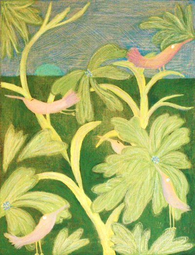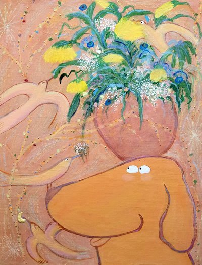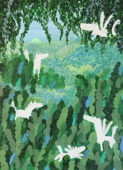그때 그때 작업 방향과 맞는 재료를 선택하는 편이지만 그 중에서도 가장 좋아하는 조합은 오일파스텔 x 과슈,아크릴 조합입니다. 두 재료가 빚어내는 꾸덕 꾸덕한 질감을 좋아하는 것 같습니다. 제 작업 스타일은 마음 가는대로 그리는 자유로운 동화 감성이라는 점을 꼽을 수 있을 것 같습니다. 계속 부수고 만들고 다시 부수고 만들어서 원하는 느낌을 내는 편입니다. 정확하게 재단하여 그리기보다는 순간순간 흐르는 감성을 중요하게 여기는 편이며 이를 바탕으로 그림을 그립니다. 그리는 그림에 에너지를 받아서 그리는 경우도 많아요.