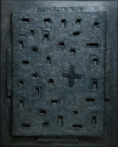 겉으로 보기에 평면적인 회화의 형식을 취하고 있으나 시선을 옆으로 옮기면 종이의 결이 만들어내는 입체감이 드러난다.