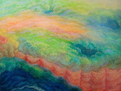 일정한 패턴들의 선을 긋고 피고를 반복하면서 하나의 조형적 이미지를 만들어나간다.