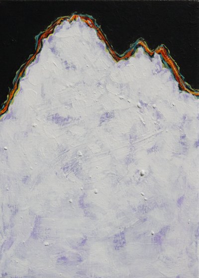 옅은 화이트색을 덮어 공기의 느낌을 표현하고 있습니다. 겹겹이 산은 하나하나 멀어질수록 공기로 한 층 옅어지는데요. 어려서 가족여행을 다니다보면 산이 많은 우리나라에서 흔히 볼 수 있는 산 색의 그라데이션을 너무 좋아하였고 그런 감성이 마음속 깊이 자리하고 있던 것이 이제 작품의 표현으로 꺼내져 나온 것 같습니다.
