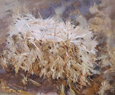기법은 impasto 와 나이프 작업을 통해 앤틱함과 고풍스러운 듯한 밀도감을 중시하며 붓터치에