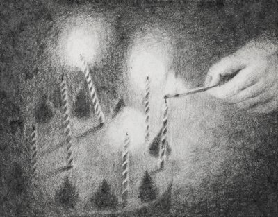 우리는 우연히 어떠한 장면을 마주했을 때, 어디선가 경험한 듯한 느낌을 받는다. 기억은 선명하게 나진 않지만 마치 과거의 어떠한 상황에 나도 함께 존재했었던 것처럼 익숙함과 흐릿함을 느낀다. 오래되고 초점이 맞지 않는 흑백사진을 보는 것과 같이 그림에는 여러 겹의 연필 선을 쌓으며 윤곽선과 세부 묘사를 하지 않는다. 어쩌면 기억은 선명하지 않아서 우리가 추억할 수 있는 것일지도 모른다. 이 과정을 통해 과거를 회상하게 되며 그리움이라는 감정이 그림의 시작점이 된다. 나의 시선을 통해 나의 회상, 그리고 보는 이들도 각자만의 해석을 만들어갈 수 있다.