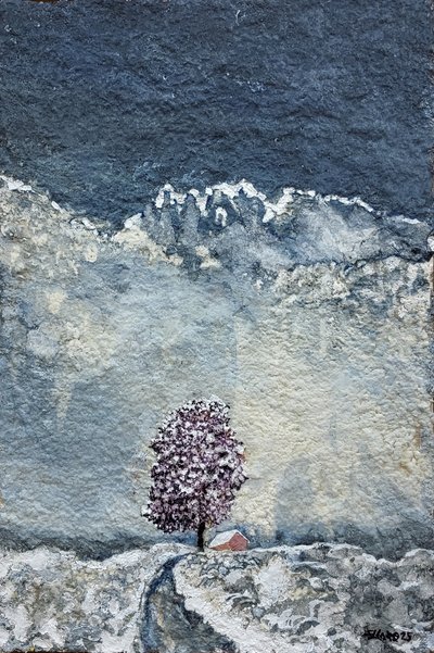 당초 한지에 밑그림정도 채색을 한후 책장위에 무심코 방치된 작품이었는데, 그 당시에 우연히 길고양이와 친해져 작업실을 제집처럼 드나든 녀석이 하루는 작업실을 난장판으로 만들며 그 방치된 그림에도 막 스크레치를 하여 몹시 속상한 일이 있었다. 그러나 마음을 추수리고 차분히 망가진 그림을 펼쳐보는 순간 긁혀진 모습들의 조화가 너무도 신선하게 다가오며 이후 물들인 한지를 화판에 단단히 배접한후 긁거나 뜯어내는 표현기법을 사용하게 되었다.