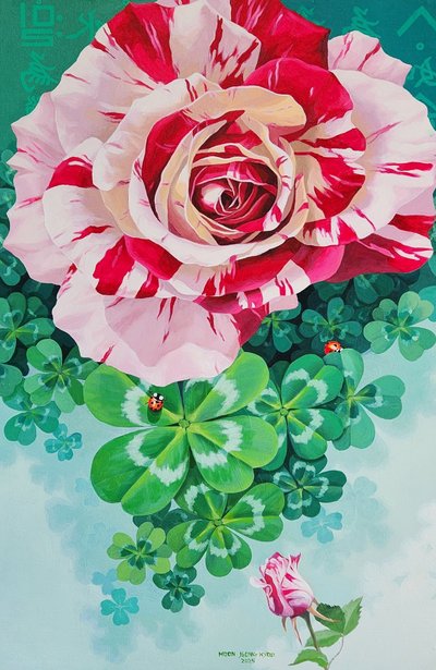 세잎 클로버의 꽃말은 행운을 상징하고 네 잎 클로버는 돌연변이로서 행운과 행복의 상징한다. 다섯 잎 클로버는 금전운과 더 큰 행운이고, 여섯 잎 클로버의 꽃말은 건강운 이라고 알려져 있다. 이렇듯 꽃말의 상징적인 내용들이 감상자들에게 긍정적인 마력으로 함께하기를 소망하는 마음으로 표현하였다.