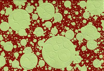 저는 크고 작은 동그라미를 모두 붓으로 직접 그립니다. 종종 도구로 찍어낸 표현으로 오해하시곤 하지만, 저에게는 동그라미 하나하나를 정확히 그려내는 과정이 매우 중요하기 때문에 붓과 물감 외의 재료는 사용하지 않습니다.