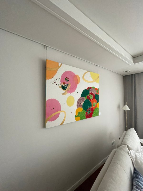 우리는 너무 많은 일을 하고, 또 너무 많은 사람을 만납니다. 그것이 즐거움을 줄 때가 있지만, 가끔은 그것이 내 어깨를 짓누르고 있다고 생각할 때가 있죠. 그럴 때 우리에게 필요한 것은 마음의 휴식입니다. 이 작품은 마음의 휴식이 필요한 그 누구에게라도 좋은 에너지를 줄 수 있습니다. 직선이 아닌 곡선, 원형의 이미지가 주를 이루고 있어 부드럽고 자유로운 느낌을 주고, 동양화 특유의 차분한 색감이 따뜻한 분위기를 만들어 냅니다. 우리 삶에 쉼표가 필요할 때, 그리고 나를 힘들게 하는 것을 뒤로하고 새롭게 무언가를 시작하려 할 때, 나를 응원해 줄 따뜻한 에너지가 간절해지지 않나요. 보는 것만으로도 미소가 지어지는 따뜻하고 밝은 이 작품을 자신에게, 또는 사랑하는 사람에게 선물해 보세요. 그 어떤 선물보다 값지고 뜻깊은 선물이 될 수 있을 것입니다.