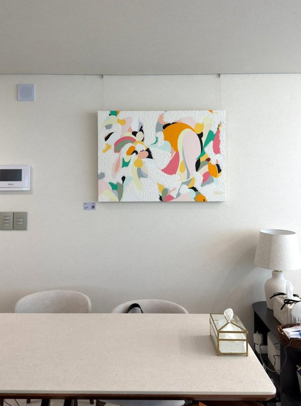 주관적인 감정의 형태를 화폭에 옮겨 작가만의 언어로 재구성하여 표현된 도상들은 따스함과 몽환적인 분위기를 자아냅니다. 우리가 쉽게 지나칠 수 있는 섬세한 감정의 굴곡을 캐치하여 다양한 혼합 재료들로 특유의 질감을 표현합니다. 매초 새롭게 시작되는 ‘이 순간’은 찰나의 현재로 태어나 과거가 되어가고 있습니다. 하지만 감정과 시간이 부여되는 순간 동안은 ‘살아있는 존재’로 인식되어 다시 현존 될 수 있죠. 현재 느껴지는 감정을 현존의 증거로 시작된 작업은 한순간 동안이라도 살아있는 존재를 색채와 형태로 표현하여 ‘감정 공간’을 만들어 가는 것입니다. 작품 제목이 숫자인 것은 세월이 흘러 늙어가고 인생이 변해가듯 작품도 영원히 같은 형태로 존재하기보다 살아있는 존재처럼 시간이 흐름에 따라 장소에 따라 사람들과 같이 직함, 외모, 구성원의 유동성을 두어 보는 이에게는 ‘그 누구의 어느 날’ 혹은 ‘그 누구’, ’그 누구의 누구’도 될 수 있는 여지를 제시하기 위함입니다. 특징짓거나 규정하지 않는 새로운 형태의 작품을 보며 우리의 기억 속 자리 잡은 가장 순수한 경험을 떠올려보는 건 어떨까요?