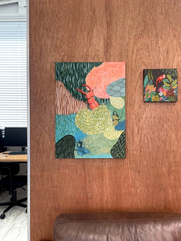포근한 색감과 아기자기한 이미지가 불안한 마음을 편안하게 해주고, 지루하고 우울한 하루를 보낸 당신의 기분을 좋게 만들어줄 수 있는 작품입니다. 아름답게 표현된 자연의 모습은 힘든 삶을 속의 희망을 상징하고, 저물어가는 인생의 아름다움을 보여주는 것 같습니다. 작가의 유쾌한 상상력에 미소를 짓게 되고, 작품의 내용인 낙화(落花)와 작품의 제목인 낙하(落下), 비슷한 발음을 활용한 언어유희에 한 번 더 미소를 짓게 됩니다. 거실이나 주방처럼 가족이 함께 모이는 공간에 어울리는 작품을 찾고 계신 당신께 이 작품을 추천합니다. 크기가 크지 않아 공간에 포인트를 주기 위한 소품으로도 안성맞춤입니다.