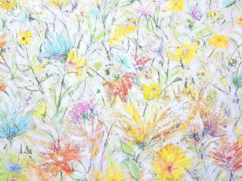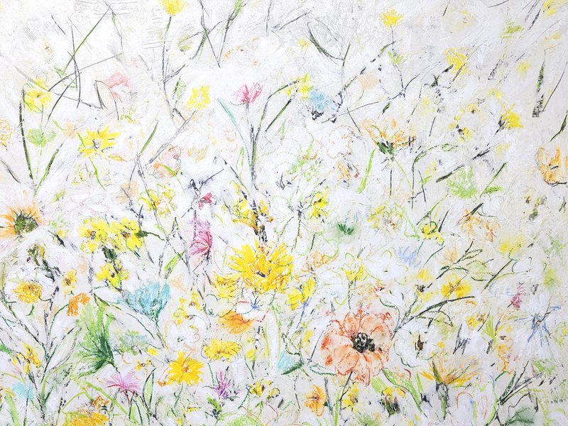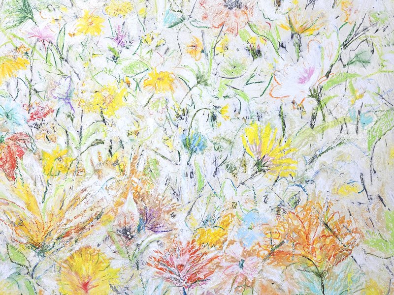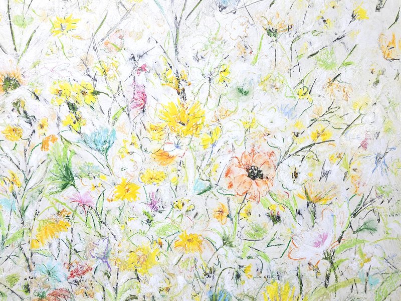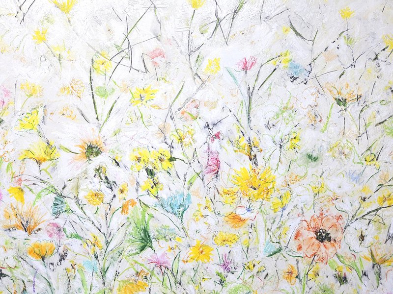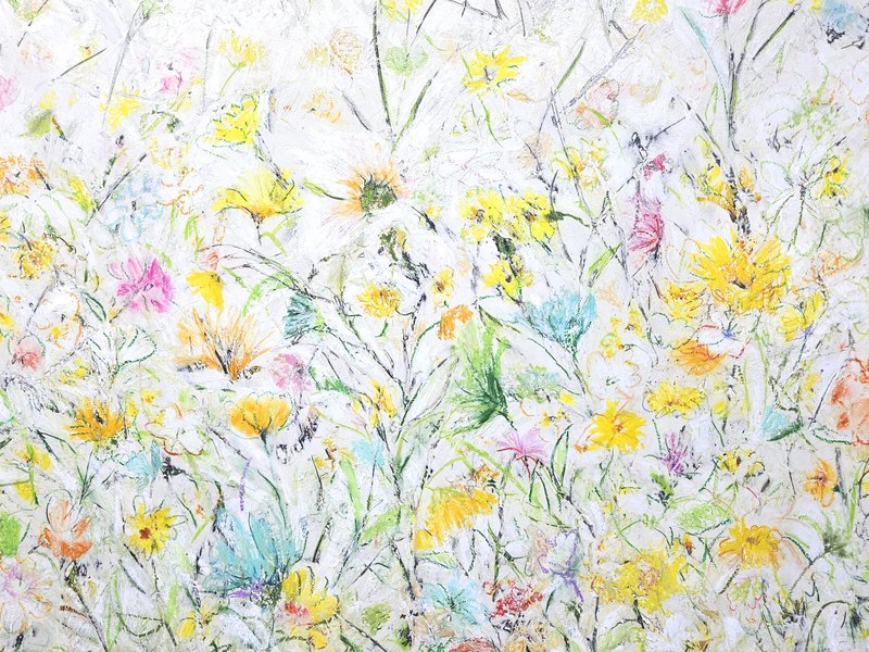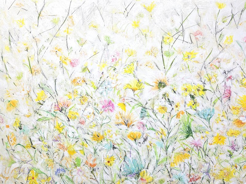 숲속에 투박하게 피어있는 듯한 꽃들이 표현되어 있습니다. 화려하거나 뚜렷한 형상을 하기보다는 빈티지하면서도 쓸쓸하고, 빽빽하면서도 듬성하게 보이죠. 박정선 작가는 주로 의식과 무의식 그 경계에 있는 상징적 표상을 화면 위에 구현합니다. 이 작품에서는 숲의 잔상들을 통해 익숙하고도 낯선 구성과 대상으로 감상자에게 다가가고 있습니다. 건조하고 자유로운 선과 물감 드리핑으로 이루어진 작가만의 표현법으로 완성된 특유의 몽환적인 분위기를 느껴보시기를 바랍니다.
