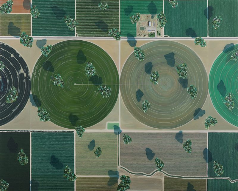 조태광 작가의 회화에는 완벽한 풍요와 절대적 여유가 존재한다. 작가는 구글어스를 이용해 우리의 삶의 터전에서 약간 비껴간 장소를 선정해 그림 안에 녹여내고, 그곳은 분명 현실 세계이지만 대부분의 현대인에게는 유리된 여유와 풍요를 가진 선택된 자들을 위한 유토피아이다. 또한 깔끔하게 구획으로 나뉜 자연의 모습을 다룬 작품들은 유린당한 자연과 인공적 질서를 대표하는 이미지로 인간에게 정복된 숲의 모습을 그리고 있다. 이처럼 작가는 현실과 거짓을 화면 안에 뒤섞어 관객을 흔들며 무엇이 유토피아이고 디스토피아인지 정확한 경계를 알려주지 않는다.