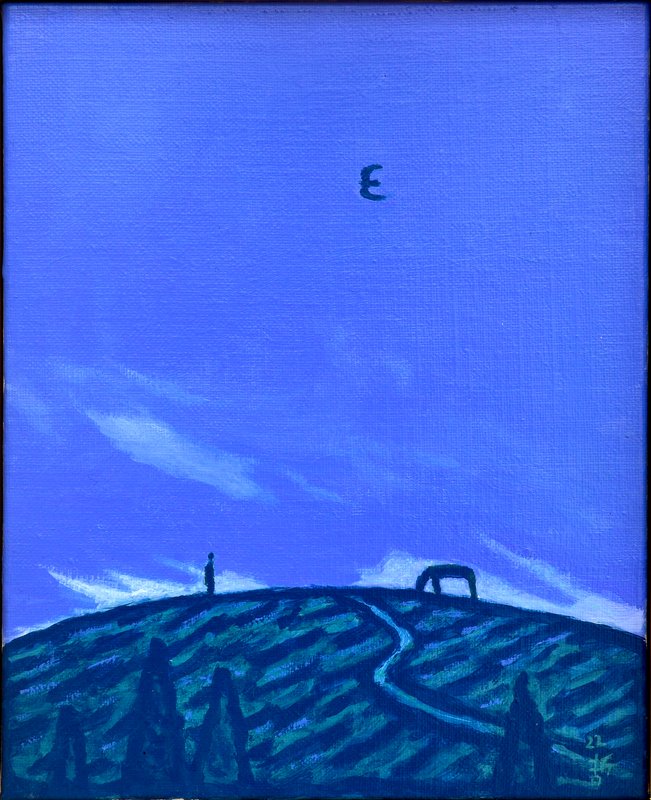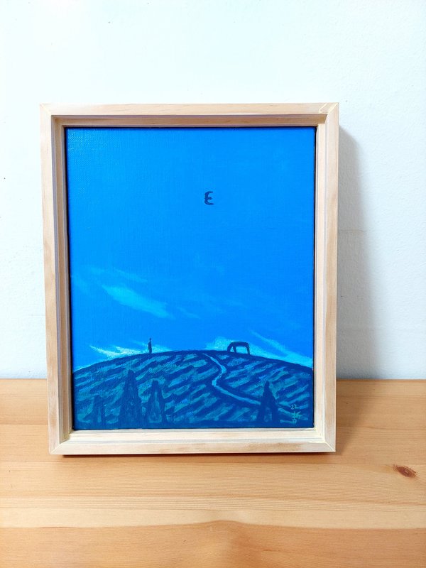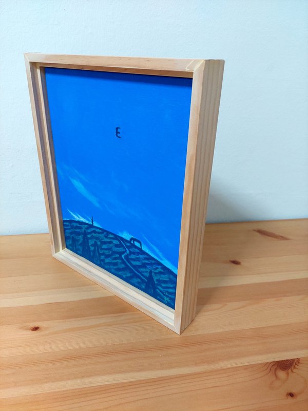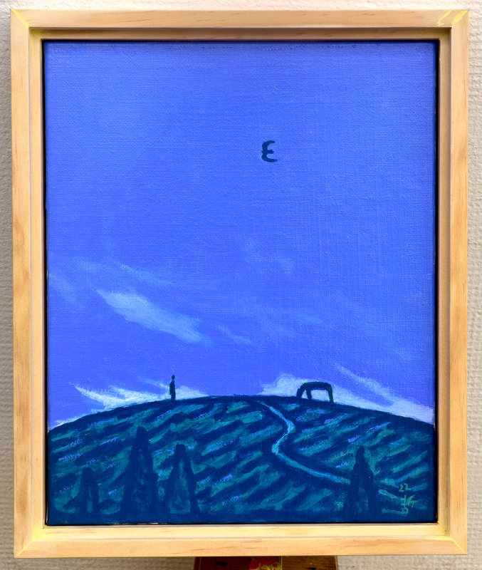 “이어져 있음”은 김용철 작가의 주요 모티프입니다. 서로 다른 공간에 떨어져 있는 사물들도, 서로 다른 사람들도, 서로 다른 경험들도 보이지 않는 선들로 연결되어 있고 서로에게 영향을 주는 관계 속에 존재한다는 작가의 세계관을 예술적 상징으로 보여주는 대표작이 <채집풍경-이어져 있다> 입니다. 자그마한 그림 속에 다섯 채의 집, 그 위에 자라난 수풀과 그 위에 떠오른 바나나 같은 달 등 사물의 단순한 묘사는 보는 이의 궁금증을 자아냅니다. 그러나 이내 그 수평선들이 하나로 만나 내려오면서 집, 즉 우리가 살아가는 공간으로 모아드는 모습을 볼 수 있습니다. 푸른 수평선들 사이사이의 작은 집들은 위에서 아래로 끊임없이 잔잔한 물결 파도를 넘어 건너는 배 같기도 하고 왼쪽에서 오른쪽으로 물결을 따라 흘러가는 배 같기도 합니다. 서로 연결되어 있다는 통찰을 단순하지만, 예술적으로 표현한 작품입니다.