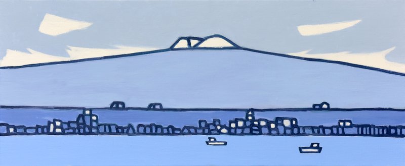 작품은 작가가 세상을 바라보는 시선에 따라 따뜻하기도, 차갑기도, 단조롭기도, 재미있기도 합니다. 김용철 작가는 작가가 삶을 살아가면서 “채집”한 다양한 삶의 순간들을 한 폭의 그림에 따뜻하게 담아냅니다. 작은 집, 나무, 배를 타고 가는 사람 등이 그려져 있는 작가의 작품은 인생에서 만나는 어느 순간 하나, 어느 사물 하나도 놓치지 않고 그 속에서 의미를 찾아내려는 작가의 세계관을 잘 드러냅니다. 한 가지 메인 색상으로 전체 풍경을 그려낸 작가의 작품은 마치 어린 시절 학교에서 만든 고무 판화 같기도 하고 여백 없이 가득 채운 동양화 같기도, 고대 선사시대 유물 속에서 발견되는 유적지 그림 같기도 합니다. 이렇게 여러 가지 얼굴을 가지고 있는 작가의 작품은 우리가 일상에서 가까이 두고 보아도 볼 때마다 새로운 의미를 발견할 수 있고 그 속의 이야기를 찾아낼 수 있어 나날이 색다른 영감을 주는 그림입니다. 그림 한편에 자리한 자그마한 인간의 모습과 그 주위의 커다란 자연환경, 이름 모를 사물들은 우리 주변을 둘러싸고 있는 환경과 그 속에 무궁무진하게 펼쳐져 있는 가능성에 관해 이야기해 줍니다. 달밤에 배를 타고 가는 사람 위로 쏟아져 내려오는 햇살 또는 별빛과 같은 사선 방향의 밝은 빛은 그림 전체를 아스라이 밝혀주며 고요하고 아름다운 깊은 밤 속에 포근히 싸여 있는 것 같은 느낌을 불러일으킵니다.