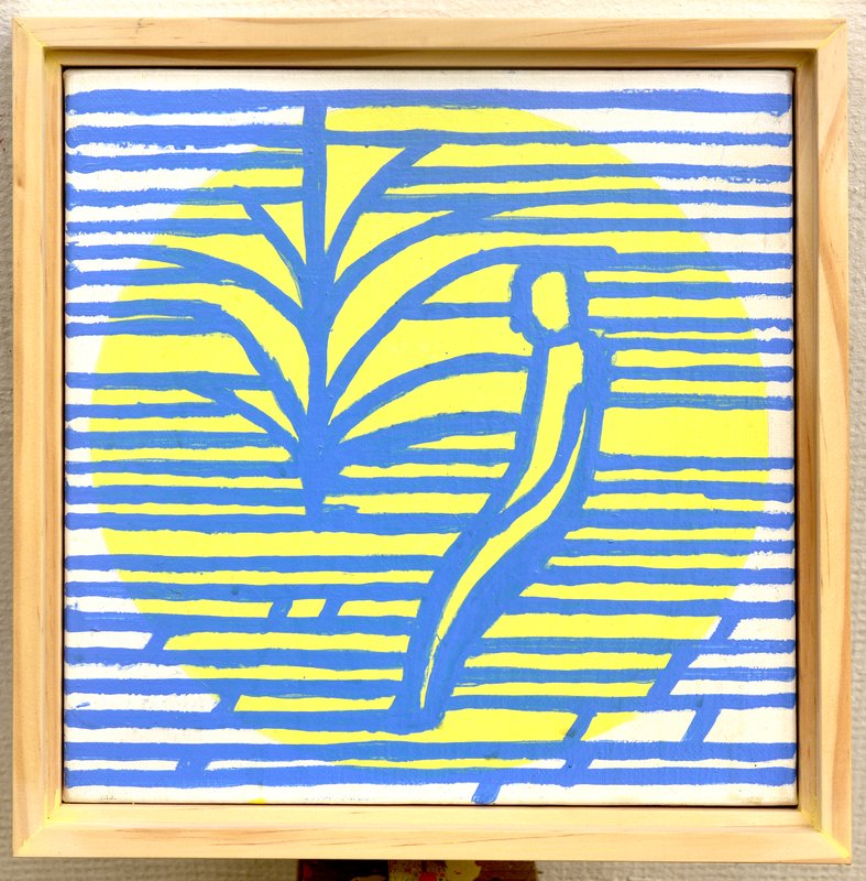 우리는 삶을 살아가면서 생각지도 못하게 이어져 있는 순간들에 놀랄 때가 있습니다. 우연히 만났던 친구를 통해 일자리를 얻게 된다든지, 누군가가 떨어뜨리고 간 벙어리 장갑을 보고 어린 시절 옛 친구를 떠올리기도 하는 것이 이러한 순간들 아닐까요? 작가는 인생의 많은 순간들이 서로 연결되어 있으며 이전의 기억들, 사물들, 사람들과 함께 어우러져 존재한다는 것을 그림 속에 담아냅니다. 마치 강물 같기도 한 그림 속 길은 그 길을 걸어가면서 우리가 겪는 다양한 삶의 장면들을 꿰뚫는 인생의 길 같기도 합니다. 전반적으로 푸른 색이 사용되어 차분하면서도 부드럽고 굵은 선끼리 서로 맞닿아 있는 그림 속 사물들은 보면 볼수록 차가움과 부드러움을 동시에 보여주는 신비로운 세계 같습니다. 마치 눈물을 머금은 듯 흐릿하면서 파스텔 톤의 푸른색이 섞여 있는 이 작품은 각각의 사물들이 뚜렷하지는 않지만 서로 어우러져 우리의 세상을 만들어가는 것을 보여줍니다. 무채색 배경의 벽에 전시하면 다양한 장면을 속에 담고 있는 한 조각의 커다란 모자이크 같은 느낌을 줄 작품입니다.