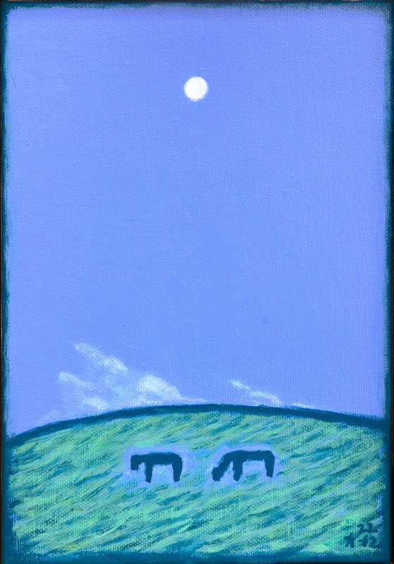 우리는 삶을 살아가면서 생각지도 못하게 이어져 있는 순간들에 놀랄 때가 있습니다. 우연히 만났던 친구를 통해 일자리를 얻게 된다든지, 누군가가 떨어뜨리고 간 벙어리 장갑을 보고 어린 시절 옛 친구를 떠올리기도 하는 것이 이러한 순간들 아닐까요? 작가는 인생의 많은 순간들이 서로 연결되어 있으며 이전의 기억들, 사물들, 사람들과 함께 어우러져 존재한다는 것을 그림 속에 담아냅니다. 마치 강물 같기도 한 그림 속 길은 그 길을 걸어가면서 우리가 겪는 다양한 삶의 장면들을 꿰뚫는 인생의 길 같기도 합니다. 전반적으로 푸른 색이 사용되어 차분하면서도 부드럽고 굵은 선끼리 서로 맞닿아 있는 그림 속 사물들은 보면 볼수록 차가움과 부드러움을 동시에 보여주는 신비로운 세계 같습니다. 마치 눈물을 머금은 듯 흐릿하면서 파스텔 톤의 푸른색이 섞여 있는 이 작품은 각각의 사물들이 뚜렷하지는 않지만 서로 어우러져 우리의 세상을 만들어가는 것을 보여줍니다. 무채색 배경의 벽에 전시하면 다양한 장면을 속에 담고 있는 한 조각의 커다란 모자이크 같은 느낌을 줄 작품입니다.