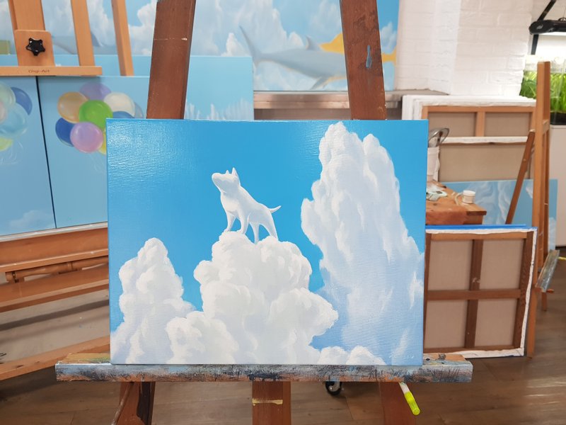 어린 시절, 하늘에 떠 있는 구름을 보는 재미에 빠져 본 경험이 있을 것입니다. 우리의 상상 속에서 구름은 강아지, 토끼, 양 떼, 커다란 물고기, 다양한 모습으로 변하곤 했습니다. 하지만 하늘을 보는 것이 언젠가부터 낯선 일이 되었습니다. 우리는 하루하루 바쁘게 살아가느라 하늘을 올려다볼 여유가 없거나, 시선을 머물 만큼 아름다운 하늘을 도시에서 찾을 수 없기 때문이겠죠. 그 어떤 이유라도 많은 사람이 파란 하늘, 그리고 그 속에 하얀 구름을 바라보는 즐거움을 잃었다는 것은 부정할 수 없을 것 같습니다. 구름을 그린 이 작품은 우리가 잊어버린 즐거움을 되찾아줄 것입니다. 뭉게뭉게 피어오른 흰 구름은 그 자체로 따뜻한 분위기를 자아내고 구름 속 그리고 그 너머에 무엇이 숨겨져 있을까 하는 궁금증도 자아냅니다. 재미없는 일상에 따뜻한 위로, 그리고 유쾌한 설렘을 원하는 당신이라면 이 작품을 공간에 걸어보세요.