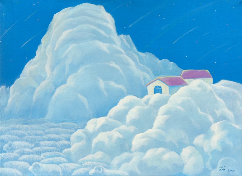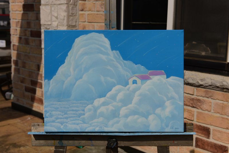 어린 시절, 하늘에 떠 있는 구름을 보는 재미에 빠져 본 경험이 있을 것입니다. 우리의 상상 속에서 구름은 강아지, 토끼, 양 떼, 커다란 물고기, 다양한 모습으로 변하곤 했습니다. 하지만 하늘을 보는 것이 언젠가부터 낯선 일이 되었습니다. 우리는 하루하루 바쁘게 살아가느라 하늘을 올려다볼 여유가 없거나, 시선을 머물 만큼 아름다운 하늘을 도시에서 찾을 수 없기 때문이겠죠. 그 어떤 이유라도 많은 사람이 파란 하늘, 그리고 그 속에 하얀 구름을 바라보는 즐거움을 잃었다는 것은 부정할 수 없을 것 같습니다. 구름을 그린 이 작품은 우리가 잊어버린 즐거움을 되찾아줄 것입니다. 뭉게뭉게 피어오른 흰 구름은 그 자체로 따뜻한 분위기를 자아내고 구름 속 그리고 그 너머에 무엇이 숨겨져 있을까 하는 궁금증도 자아냅니다. 재미없는 일상에 따뜻한 위로, 그리고 유쾌한 설렘을 원하는 당신이라면 이 작품을 공간에 걸어보세요.
