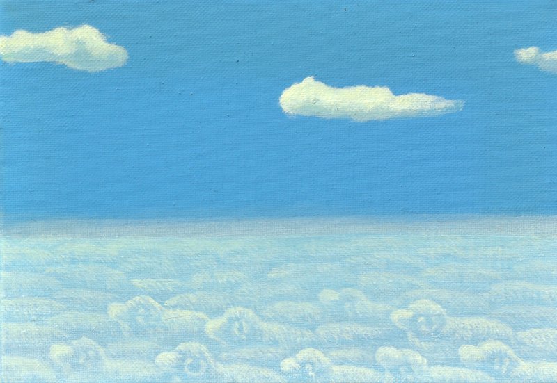 누구나 가끔 일상으로부터의 탈피를 꿈꾼다. 지루한 일상에서 사람들은 새로운 꿈을 꾸기도 하고 어린 시절의 추억을 회상하기도 하며 마음속에 자기만의 그림을 그린다. 이흙 작가는 이러한 상상 속으로의 여행을 화면 위에 표현한다. 작품의 주요 소재인 하늘은 그 어떤 것도 될 수 있는, 끊임없는 가능성과 모험이 이어지는 곳이다. 작가의 상상력을 바탕으로 그려진 다양한 구름의 모습은 보는 사람에 따라 다르게 보이는데, 관객은 작품을 통해 자유롭고 유쾌한 상상의 기회를 얻게 된다. 작가의 이러한 유쾌한 상상력은 인생의 무거운 짐을 지고 살며 작업을 하던 중 자연 속으로 거처를 옮기게 되며 탄생하였다. 작품이 자아내는 따뜻함과 희망적 에너지는 삶의 무거움을 겪어 본 사람이 자연을 만난 후에 비로소 그려낸 삶의 포근함이기에 더욱 값지다.