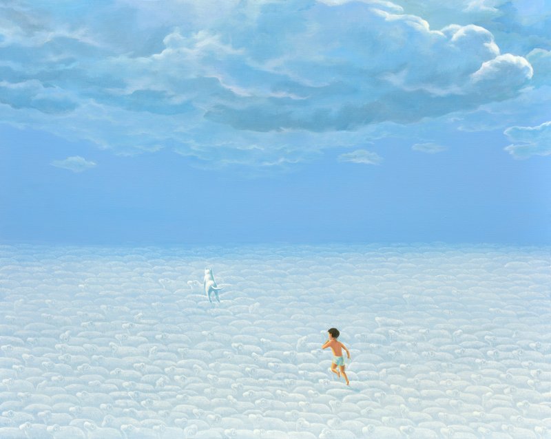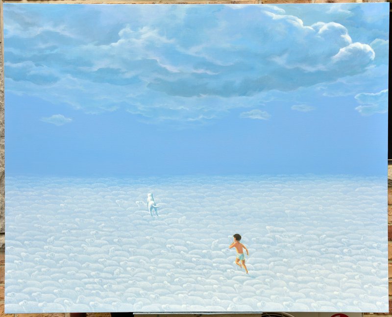 누구나 가끔 일상으로부터의 탈피를 꿈꾼다. 지루한 일상에서 사람들은 새로운 꿈을 꾸기도 하고 어린 시절의 추억을 회상하기도 하며 마음속에 자기만의 그림을 그린다. 이흙 작가는 이러한 상상 속으로의 여행을 화면 위에 표현한다. 작품의 주요 소재인 하늘은 그 어떤 것도 될 수 있는, 끊임없는 가능성과 모험이 이어지는 곳이다. 작가의 상상력을 바탕으로 그려진 다양한 구름의 모습은 보는 사람에 따라 다르게 보이는데, 관객은 작품을 통해 자유롭고 유쾌한 상상의 기회를 얻게 된다. 작가의 이러한 유쾌한 상상력은 인생의 무거운 짐을 지고 살며 작업을 하던 중 자연 속으로 거처를 옮기게 되며 탄생하였다. 작품이 자아내는 따뜻함과 희망적 에너지는 삶의 무거움을 겪어 본 사람이 자연을 만난 후에 비로소 그려낸 삶의 포근함이기에 더욱 값지다.