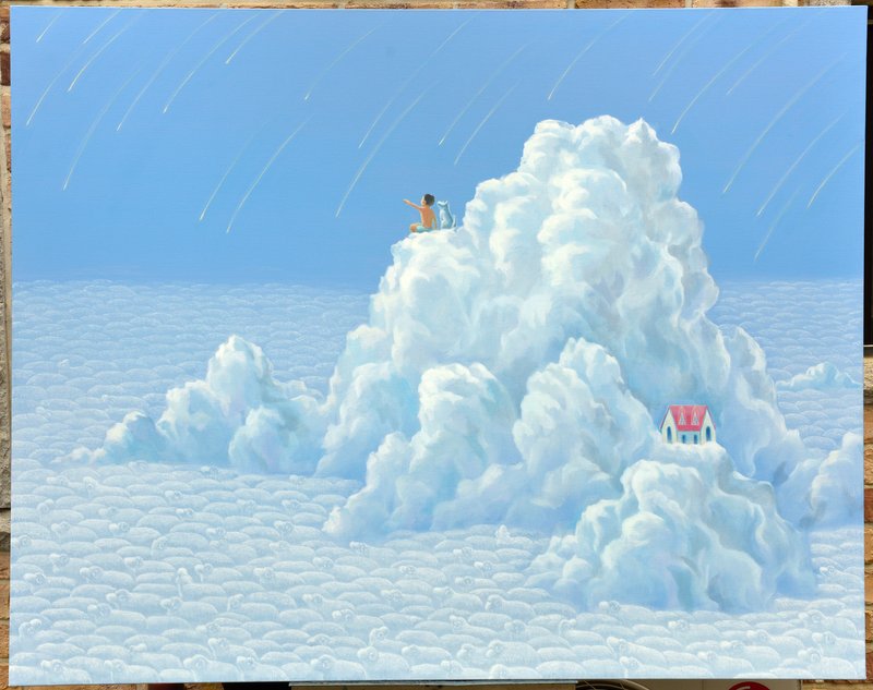 누구나 가끔 일상으로부터의 탈피를 꿈꾼다. 지루한 일상에서 사람들은 새로운 꿈을 꾸기도 하고 어린 시절의 추억을 회상하기도 하며 마음속에 자기만의 그림을 그린다. 이흙 작가는 이러한 상상 속으로의 여행을 화면 위에 표현한다. 작품의 주요 소재인 하늘은 그 어떤 것도 될 수 있는, 끊임없는 가능성과 모험이 이어지는 곳이다. 작가의 상상력을 바탕으로 그려진 다양한 구름의 모습은 보는 사람에 따라 다르게 보이는데, 관객은 작품을 통해 자유롭고 유쾌한 상상의 기회를 얻게 된다. 작가의 이러한 유쾌한 상상력은 인생의 무거운 짐을 지고 살며 작업을 하던 중 자연 속으로 거처를 옮기게 되며 탄생하였다. 작품이 자아내는 따뜻함과 희망적 에너지는 삶의 무거움을 겪어 본 사람이 자연을 만난 후에 비로소 그려낸 삶의 포근함이기에 더욱 값지다.
