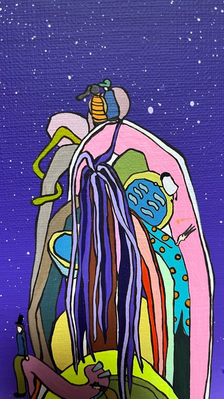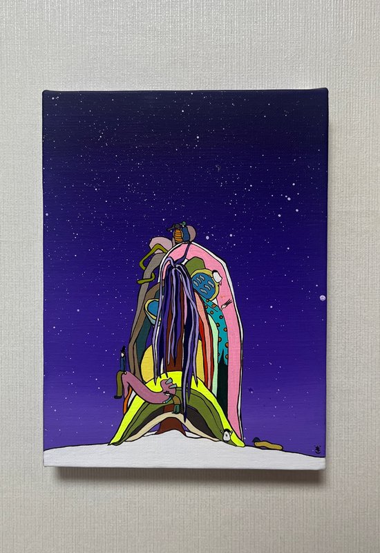 머뭇거림 없이 한 호흡에 그려 나간 듯이 보이는 선이 경쾌하고 밝은 분위기를 전해줍니다. 일상에서 흔히 볼 수 있는 작은 도상들이 캔버스 곳곳에 배치되어 있어 시선을 따라가다 보면 작가가 들려주는 이야기를 발견하게 됩니다. 어떠한 법칙에도 지배되지 않는 듯 자유분방한 풍경이 단조롭고 반복적인 일상에 지쳐 휴식이 필요한 우리에게 편안하면서 재치 있게 위안을 주고 있습니다. 점과 선의 리듬감이 돋보이고 종이 위로 도상들이 오밀조밀하게 모여 있는 곳과 면으로 채색된 부분이 과하지 않은 균형을 이루며 공간에 음악적인 변주를 줄 것입니다. 음악을 들으며 스트레스를 해소하듯, 자유로운 선과 밝은 색채를 통해 활력을 얻을 수 있습니다.