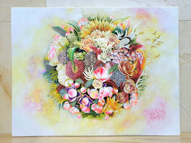 일상의 단조로움에서 벗어나 새로운 생각과 느낌이 드는 것만으로 당신의 삶은 더욱 특별해질 것입니다. 이 작품을 보고 있으면 환상적이고 신비한 동화의 세계에 들어와 있는 것처럼 느껴집니다. 게다가 전통적인 문양들과 소재를 사용해 친근함마저 느껴지죠. 선명하지만 부드럽고 온화한 색감과 전통적 소재의 현대적 표현이 돋보이는 이 작품은 당신의 공간을 우아하면서 세련되게 만들어줄 것입니다. 한 차원 더 높은 곳에서 지금 내가 사는 곳을 바라보면 힘들기만 한 현실도 가볍게 느껴지지 않을까요? 저 멀리 아련하게 보이는 상상 속의 세계로 천천히 손짓하는 듯한 이 작품은 반복된 일상으로 지친 당신의 마음을 어루만져줄 것입니다.