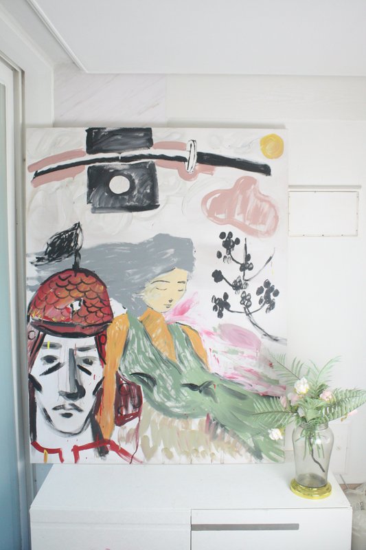형태의 생략과 과장, 거칠고 대담한 붓 터치, 분열적인 색면의 구성, 현란한 동적 이미지는 보는 사람들에게 시각적 즐거움을 선사합니다. 특히 자유롭게 뻗어 나가는 선과 강렬한 색의 조합은 독특한 에너지를 발산해 시선을 압도합니다. 한눈에 알아보기는 어렵지만 작품을 보고 있으면 인물의 모습이 드러납니다. 작품 속 인물이 어떤 상황에 부닥쳐있는지 구체적으로 파악할 수는 없지만 거친 색감과 붓질에서 날것의 감정이 그대로 느껴집니다. 평범한 공간에 다듬어지지 않은 개성과 에너지를 더하고 싶다면 이준희 작가의 작품이 현명한 선택이 될 것입니다.