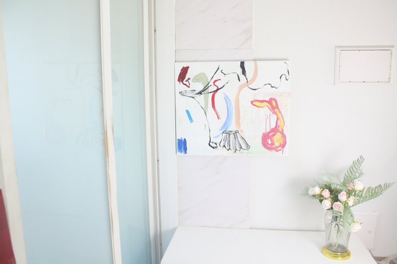 형태의 생략과 과장, 거칠고 대담한 붓 터치, 분열적인 색면의 구성, 현란한 동적 이미지는 보는 사람들에게 시각적 즐거움을 선사합니다. 특히 자유롭게 뻗어 나가는 선과 강렬한 색의 조합은 독특한 에너지를 발산해 시선을 압도합니다. 한눈에 알아보기는 어렵지만 작품을 보고 있으면 인물의 모습이 드러납니다. 작품 속 인물이 어떤 상황에 부닥쳐있는지 구체적으로 파악할 수는 없지만 거친 색감과 붓질에서 날것의 감정이 그대로 느껴집니다. 평범한 공간에 다듬어지지 않은 개성과 에너지를 더하고 싶다면 이준희 작가의 작품이 현명한 선택이 될 것입니다.