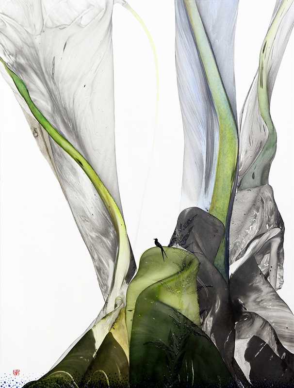 끊임없는 경쟁 속에 사는 현대인에게 자연은 휴식과 안식의 공간입니다. 그래서 많은 사람이 우리를 둘러싼 크고 높은 건물을 벗어나 한적하고 여유로운 삶을 꿈꾸지만, 그것은 말처럼 쉬운 일이 아닌 것 같습니다. 그런 당신에게 이 작품을 추천해 드리고 싶습니다. 몽환적이고 환상적인 분위기를 자아내는 산수풍경이 눈 앞에 펼쳐집니다. 위에서 아래를 바라보는 듯한 구도는 광활한 자연의 기운과 정취를 더욱 극대화합니다. 또한 김가을 작가의 마블링, 야광 등의 독특한 기법은 자연의 숨은 빛을 발견하게 합니다. 이 작품을 통해 자연과 내가 하나 되는 물아일체를 경험하고, 현실의 갈등이나 어려움을 극복하는 힘을 얻게 될 것입니다.