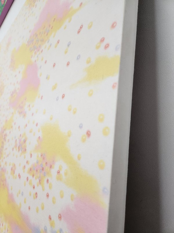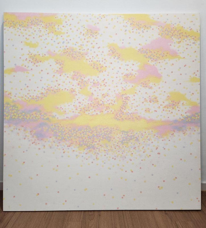 마음속에 꼭꼭 담아둔 행복한 기억의 결정체는 다시 꺼내 음미할수록 진한 향기를 냅니다. 되돌릴 수 없기에 우리에게 더욱 소중한 추억, 그 다디달았던 지난 시간은 무채색 일상 속에서 보석처럼 반짝이는 순간이었을 것입니다. 정승윤 작가의 작품은 꼬물꼬물한 작은 추억 세포 하나하나가 그물처럼 엮여 춤추고 있는 듯한 느낌을 줍니다. 호기심을 자아내는 재밌는 형상의 조그만 세포들은 보는 위치에 따라 다른 모양새로 움직이는 듯 보면 볼수록 흥미롭습니다. "행복 호르몬이 퐁퐁 솟아나게 하는, 응원과 위로를 전하는 그림"의 작가로 기억되고 싶다는 그의 생기 넘치는 작품이 자리한 공간이라면, 언제 어디서나 행복한 추억이 샘솟고, 또 새로이 생성될 것 같은 기분 좋은 예감이 듭니다.