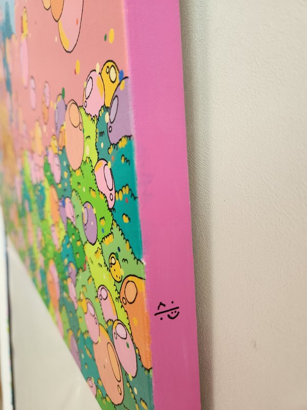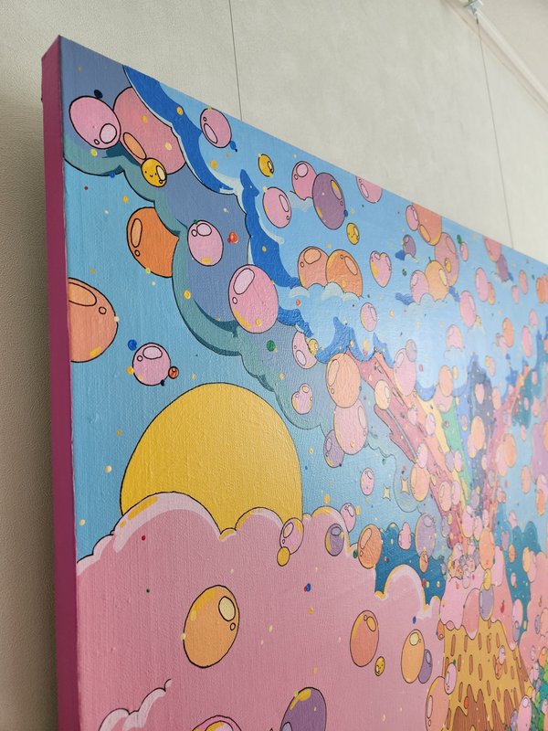 마음속에 꼭꼭 담아둔 행복한 기억의 결정체는 다시 꺼내 음미할수록 진한 향기를 냅니다. 되돌릴 수 없기에 우리에게 더욱 소중한 추억, 그 다디달았던 지난 시간은 무채색 일상 속에서 보석처럼 반짝이는 순간이었을 것입니다. 정승윤 작가의 작품은 꼬물꼬물한 작은 추억 세포 하나하나가 그물처럼 엮여 춤추고 있는 듯한 느낌을 줍니다. 호기심을 자아내는 재밌는 형상의 조그만 세포들은 보는 위치에 따라 다른 모양새로 움직이는 듯 보면 볼수록 흥미롭습니다. "행복 호르몬이 퐁퐁 솟아나게 하는, 응원과 위로를 전하는 그림"의 작가로 기억되고 싶다는 그의 생기 넘치는 작품이 자리한 공간이라면, 언제 어디서나 행복한 추억이 샘솟고, 또 새로이 생성될 것 같은 기분 좋은 예감이 듭니다.