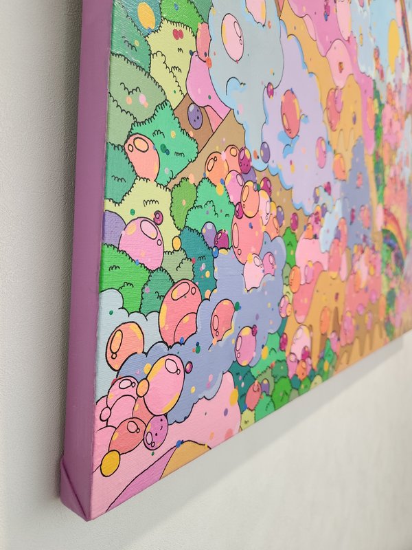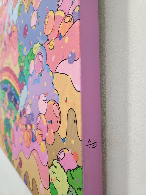 마음속에 꼭꼭 담아둔 행복한 기억의 결정체는 다시 꺼내 음미할수록 진한 향기를 냅니다. 되돌릴 수 없기에 우리에게 더욱 소중한 추억, 그 다디달았던 지난 시간은 무채색 일상 속에서 보석처럼 반짝이는 순간이었을 것입니다. 정승윤 작가의 작품은 꼬물꼬물한 작은 추억 세포 하나하나가 그물처럼 엮여 춤추고 있는 듯한 느낌을 줍니다. 호기심을 자아내는 재밌는 형상의 조그만 세포들은 보는 위치에 따라 다른 모양새로 움직이는 듯 보면 볼수록 흥미롭습니다. "행복 호르몬이 퐁퐁 솟아나게 하는, 응원과 위로를 전하는 그림"의 작가로 기억되고 싶다는 그의 생기 넘치는 작품이 자리한 공간이라면, 언제 어디서나 행복한 추억이 샘솟고, 또 새로이 생성될 것 같은 기분 좋은 예감이 듭니다.