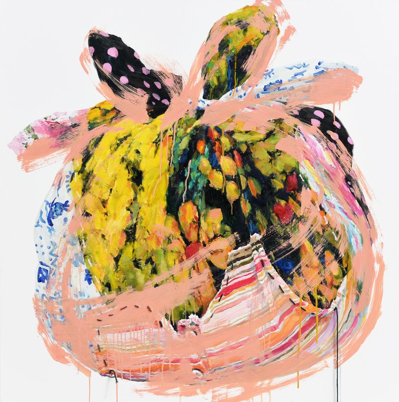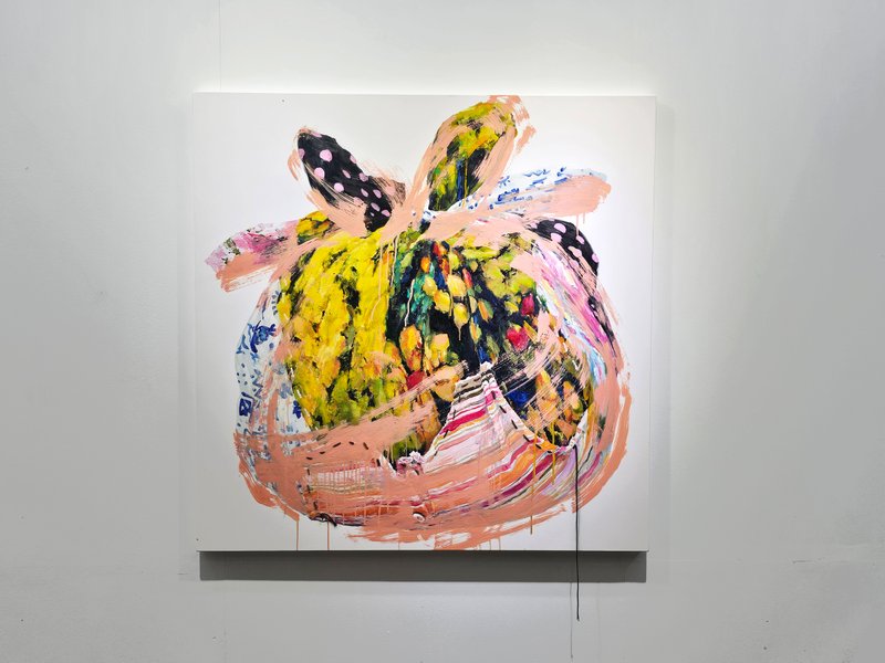 보통 박용일 작가의 작품에는 보따리 겉면에 오래된 주택, 가로수, 거리를 지나는 행인, 버스 등 일상적인 도상이 많이 등장합니다. 하지만 이 작품은 어쩐지 구체적인 내용이 그려져 있지 않습니다. 아무런 형체를 알아볼 수 없는 채로 원색의 유화 물감이 서로 충돌하고 있습니다. 누구의 것인지, 어떤 물건이 들어 있을지, 왜 짐을 싸게 되었을지 등에 대한 이야기들을 상상해 볼 수 없습니다. 반면, 그러한 이야기들을 삼켜버리듯 강한 시각적 자극을 주는 붉은색이 배경에서 강한 존재감을 드러냅니다. 그래서 이 작품은 역설적으로 더욱더 보따리를 싸고 이동할 수밖에 없었던 서민들의 이야기에 대한 관심을 환기하고, 그들에 대해 알고 싶게 합니다. 원색의 강렬한 대비와 그 이면에 놓인 이야기를 함께 느끼고 경험해 보시길 바랍니다.