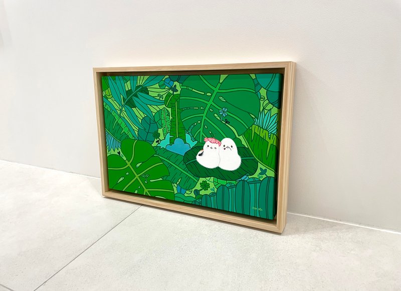 작품을 보는 순간 맑고 영롱한 느낌에 빠져들게 됩니다. 우리가 지켜줘야 할 여리고 약한 존재들이 한없이 순수하게 표현되어 있으니까요. 인간이 자신의 욕망을 채우기 위해 벌인 일들을 계기로 하여 시작된 작업이지만, 작가가 유토피아적 공간으로 재구성해 낸 작품 속에는 아픔과 상처가 아닌 서정적인 순수한 이야기가 담겨 있어 가슴 깊이 따스함이 전해집니다. 산뜻하고 밝은 색감과 작고 보드라우며 생기 있는 이미지가 어우러져 미소를 머금게 합니다. 동심(童心)을 간직하고 유지하고픈 공간, 맑고 순수한 느낌으로 환한 공간감을 만들고자 하는 장소에 추천합니다.
