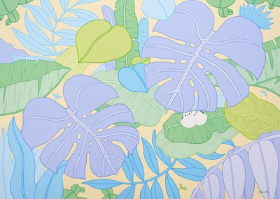 작품을 보는 순간 맑고 영롱한 느낌에 빠져들게 됩니다. 우리가 지켜줘야 할 여리고 약한 존재들이 한없이 순수하게 표현되어 있으니까요. 인간이 자신의 욕망을 채우기 위해 벌인 일들을 계기로 하여 시작된 작업이지만, 작가가 유토피아적 공간으로 재구성해 낸 작품 속에는 아픔과 상처가 아닌 서정적인 순수한 이야기가 담겨 있어 가슴 깊이 따스함이 전해집니다. 산뜻하고 밝은 색감과 작고 보드라우며 생기 있는 이미지가 어우러져 미소를 머금게 합니다. 동심(童心)을 간직하고 유지하고픈 공간, 맑고 순수한 느낌으로 환한 공간감을 만들고자 하는 장소에 추천합니다.