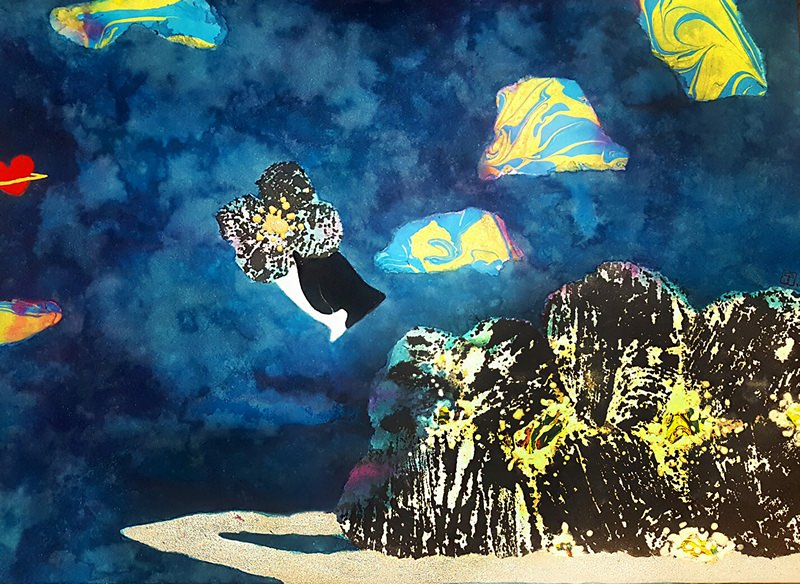 촉촉하고 따뜻한 품처럼 우주는 모든 존재의 너른 지평입니다. 이곳에서는 만물이 재편성되고 생산에 생산을 거듭합니다. 칠흑처럼 어둡고 정적인 듯하면서도 무궁무진한 생명이 역동적으로 살아 숨 쉬는 우주. 여기에서 우리의 동경과 이상은 어떻게 넘실대고 아로새겨질 수 있을까요? 최소윤 작가는 삶에 지칠 때마다 화폭에 자신만의 이상세계를 아름답게 그려냈습니다. 복잡다단한 심정과 근심은 어두운 색조와 밝은 색조를 넘나들며 그림을 그리는 과정에서 사라지며 치유가 되었다고 하네요. 붓질 하나하나 작가의 숨결이 닿아 있는 이 작품을 바라본다면, 여러분께 분명 그 풍부한 긍정의 기운이 전달될 것 같습니다.