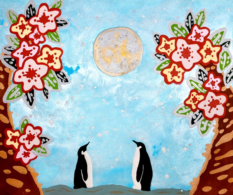 촉촉하고 따뜻한 품처럼 우주는 모든 존재의 너른 지평입니다. 이곳에서는 만물이 재편성되고 생산에 생산을 거듭합니다. 칠흑처럼 어둡고 정적인 듯하면서도 무궁무진한 생명이 역동적으로 살아 숨 쉬는 우주. 여기에서 우리의 동경과 이상은 어떻게 넘실대고 아로새겨질 수 있을까요? 최소윤 작가는 삶에 지칠 때마다 화폭에 자신만의 이상세계를 아름답게 그려냈습니다. 복잡다단한 심정과 근심은 어두운 색조와 밝은 색조를 넘나들며 그림을 그리는 과정에서 사라지며 치유가 되었다고 하네요. 붓질 하나하나 작가의 숨결이 닿아 있는 이 작품을 바라본다면, 여러분께 분명 그 풍부한 긍정의 기운이 전달될 것 같습니다.