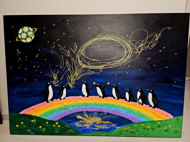 촉촉하고 따뜻한 품처럼 우주는 모든 존재의 너른 지평입니다. 이곳에서는 만물이 재편성되고 생산에 생산을 거듭합니다. 칠흑처럼 어둡고 정적인 듯하면서도 무궁무진한 생명이 역동적으로 살아 숨 쉬는 우주. 여기에서 우리의 동경과 이상은 어떻게 넘실대고 아로새겨질 수 있을까요? 최소윤 작가는 삶에 지칠 때마다 화폭에 자신만의 이상세계를 아름답게 그려냈습니다. 복잡다단한 심정과 근심은 어두운 색조와 밝은 색조를 넘나들며 그림을 그리는 과정에서 사라지며 치유가 되었다고 하네요. 붓질 하나하나 작가의 숨결이 닿아 있는 이 작품을 바라본다면, 여러분께 분명 그 풍부한 긍정의 기운이 전달될 것 같습니다.