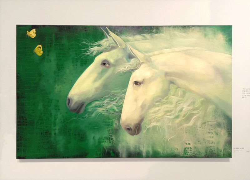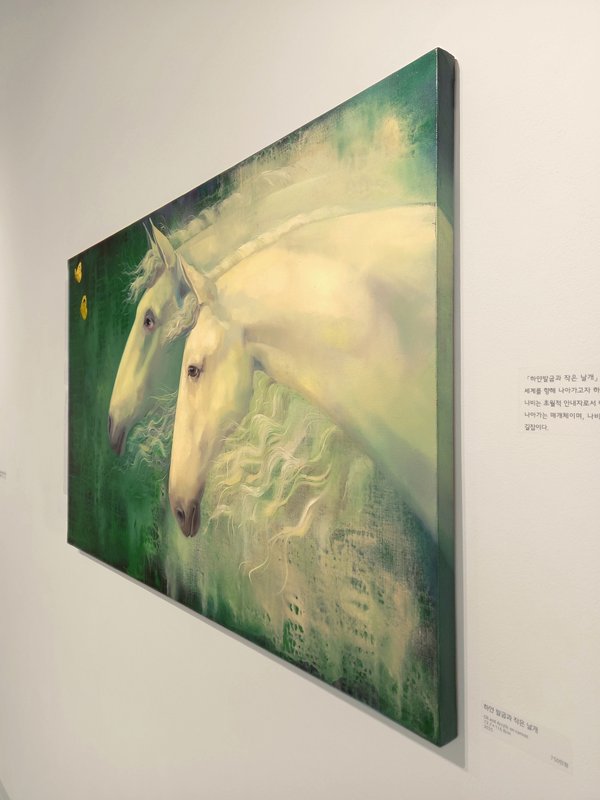 꿈을 아느냐 네게 물으면, 플라타너스 너의 머리는 어느덧 파아란 하늘에 젖어 있다. 김현승 시인의 대표작 <플라타너스>의 첫 구절입니다. 플라타너스는 언제나 꿈을 가슴에 품고 말없이 그늘을 드리워 애정을 표현하고, 삶의 무게로 힘들어하는 누군가의 동반자가 되어 그가 가는 길을 묵묵히 지켜줍니다. 그림 속 플라타너스 역시 묵묵히 서서 우리의 지친 마음을 꼭 안아주는 것 같습니다. 유채색 계열의 바탕색 위에 눈처럼 새하얀 나무껍질로 두드러져 보이는 옹이는 우리 내면을 더 강하게 만들어 주는 어린 시절의 상처와 절망과 닮아 보입니다. 일상에 지친 당신이라면 작품 속 플라타너스가 보여주는 강인함과 삶을 향한 작가의 따뜻한 시선에 위로받을 수 있을 것입니다.