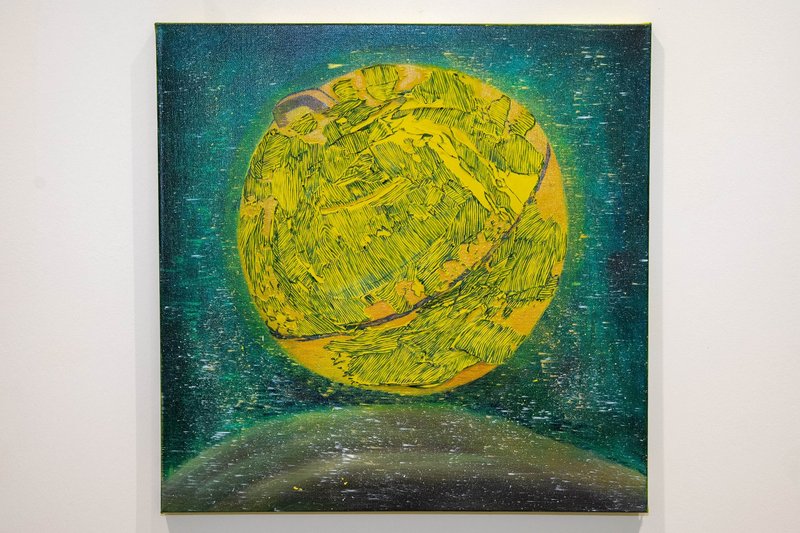 풀과 야산, 바위를 위시한 자연 풍경이 보이는가 하면, 해묵은 여러 감정들이 뒤엉켜 있는 내면이 떠오릅니다. 어디선가 본 듯한 익숙한 풍경인가 싶다가도, 낯설고 몽환적인 분위기에 다시금 정신을 일깨우게 되고요. 작가는 붓과 나이프 등의 도구들로 재료를 발라보며 우연의 효과를 기대했다고 밝힌 바 있지만, 관람자들은 한 켜, 한 켜 두텁게 쌓아 올려진 물감의 질감 앞에서 결코 가볍지 않고 억센 필연의 기운을 느끼게 됩니다. 에너지가 응축된 묵직함을 전해주면서도 감정적으로는 서늘함을 느끼게 하는 기이한 분위기가 돋보이는 작품입니다. 작가만의 손감각에 따른 자유로운 표현 역시 마음을 사로잡습니다. 이미지 덩어리들이 풀어내는 색다른 매력에 빠져 보시기 바랍니다.