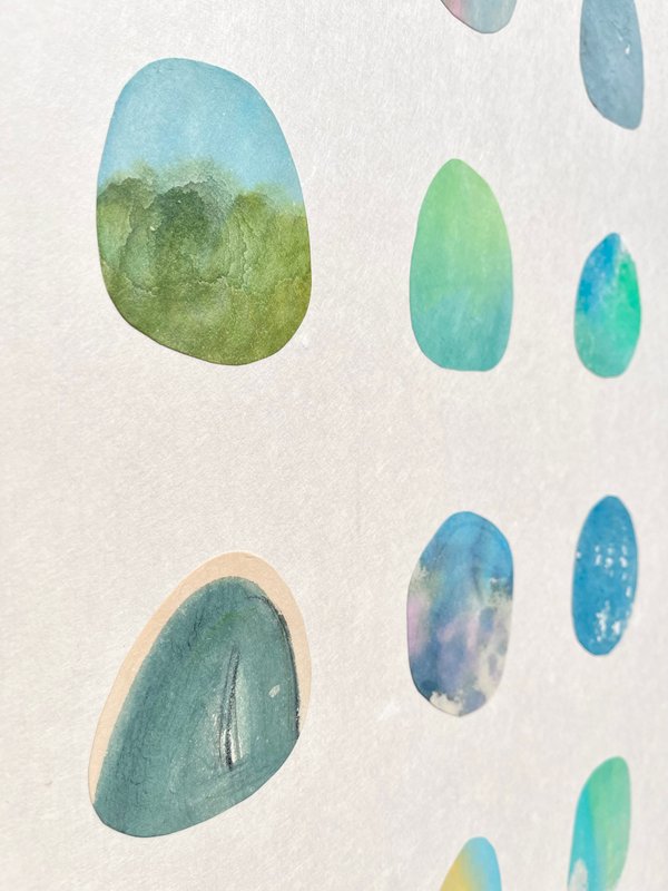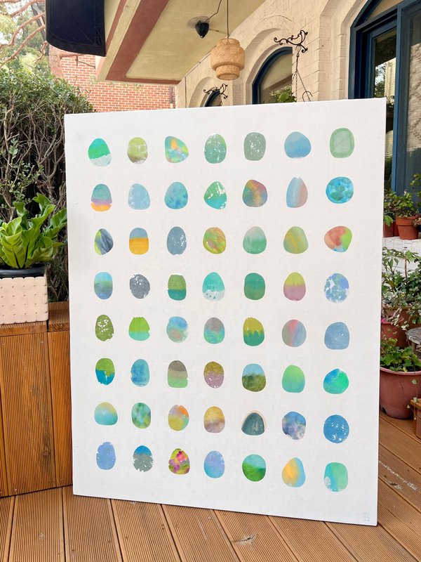 박예지나 작가의 작품에는 작가가 자연물과 함께 공존하며 느낀 다양하고 깊이 있는 심상들이 담겨 있습니다. 바닷물에 몸을 맞부딪치며 느낀 진득한 물의 촉감, 바닷가 근처에서 주운 돌멩이와 모래알의 거칠고 매끄러운 촉감, 나무를 부둥켜안고 교감했던 온도 등 작가는 섬세한 감정선으로 주변의 자연물과 교감하며 이를 그림으로 기록합니다. 옅은 재료와 심플한 도상으로 응축된 심상을 전달하는 작품들은 감상자에게 다양한 공감각적 감상을 유도합니다. 작가의 작품을 감상한 뒤 자신의 주변에 있는 모든 것에 관심을 기울여보면 보다 풍부한 작품 감상이 될 것입니다.