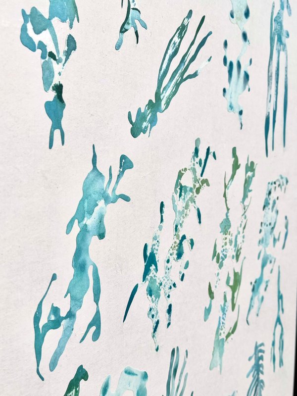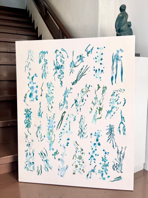 수없이 많은 길을 걸어 다니면서 우리는 꽤 많은 돌과 식물을 관찰하였을 것입니다. 그 돌들은 때로는 꾹 밟히고 때로는 무심한 발길에 차이며 그곳에 있었을 테지요. 그것들이 왜, 어떻게 그 자리에 있는 것인지, 어떤 모습을 하고 있었는지에 관심을 가져본 적은 없는 듯합니다. 그렇기에 박예지나 작가의 작품은 신선한 ‘마주침’으로 다가옵니다. 게다가 이들은 자연이라는 안온한 겉옷을 걸쳐 보는 이의 마음을 고요하고 차분하게 합니다. 물기를 한껏 머금어 투명함을 자아내는 부드러운 색감의 붓질, 혹은 담백한 한지 콜라주가 돋보이는 박예지나 작가의 작품이 공간에 새로운 감각을 일깨우는 한편 따듯한 분위기를 선사할 것입니다.