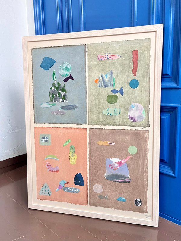 나무패널에 한지, 천연 염료, 콜라주, 채색