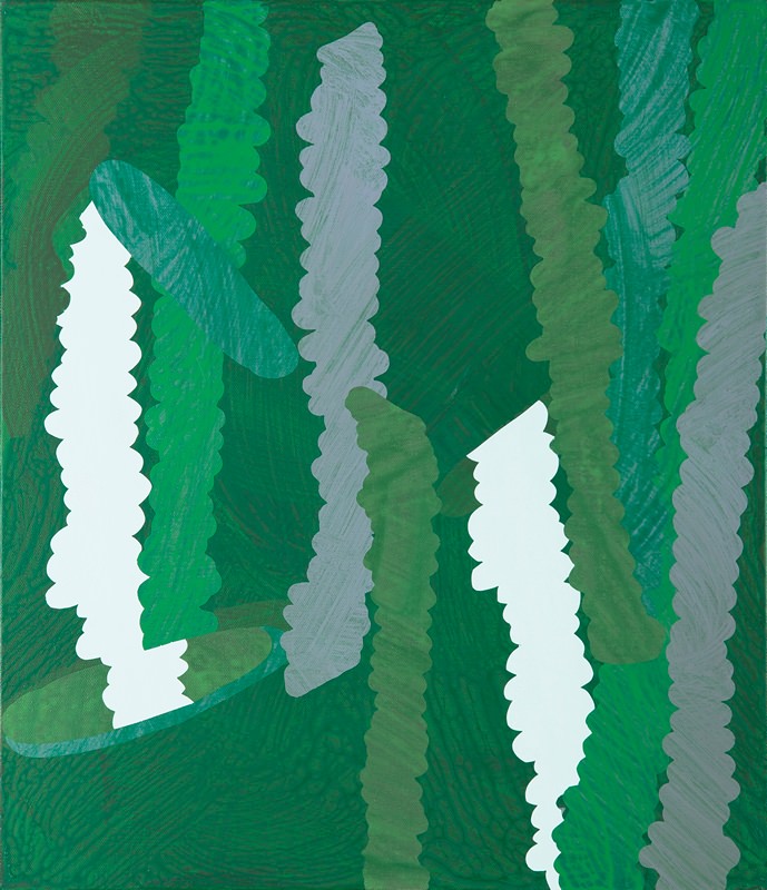 화면 전체를 덮고 있는 수많은 선은 작가가 여러 번의 붓질과 차곡차곡 쌓아 올린 물감이 만들어낸 조형 요소입니다. 탄탄하게 쌓아 올려진 구축적인 화면에서 밀도감과 무게감이 느껴집니다. 날카롭고 부드러운 선을 비롯하여 상반되는 느낌을 지닌 요소들이 이루어내는 조화는 독특한 심상을 전합니다. 그리고 중첩된 선으로 이루어진 레이어(layer)들이 겹겹이 쌓임으로써 서로 영향을 주고받는 다층적 구조를 형성합니다. 이러한 구조는 다분히 한 가지 단어로 표현하기 어려운 복합적 특성을 시각화하고 있으며, 현대 사회를 상징하는 듯한 추상을 완성하는 동시에 푸른 색감을 통해 생동감이 느껴지는 자연의 속성 역시 연상할 수 있게 합니다.